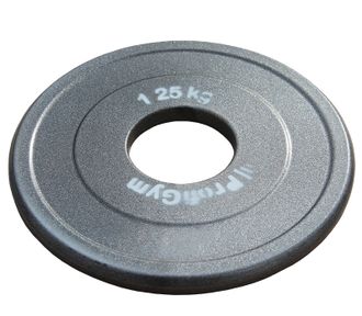 Диск олимпийского стандарта (посадочный диаметр 51 мм) с полимерным покрытием желтого цвета. Точно соответствует указанному весу - 1,25 кг, и применяется для комплектации соревновательных штанг. В силу малой толщины стальных дисков, они применяются для комплектации рекордных штанг весом свыше 300 кг.