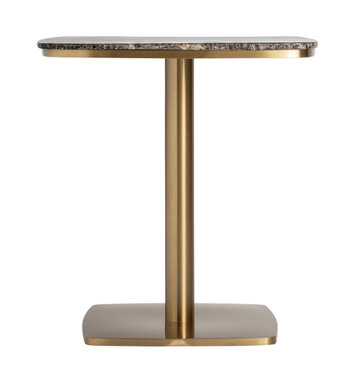 Барный стол. Изготовлен из мрамора в сочетании с нержавеющей сталью. Ширина: 70 см, Глубина: 70 см, Высота: 77 см