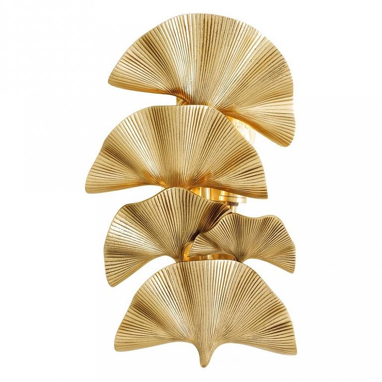 Роскошный настенный светильник в стиле ар-деко, выполненный из полированной латуни, имеет 2 лампочки формата Е14.