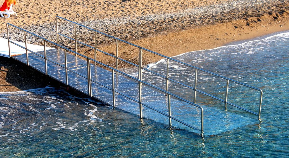 Пандус для купания представляет собой наклонное средство для поднятия и спуска. Может быть представлен в виде сплошного металлического приспособления или двух рельс, установленных по ширине колес инвалидной коляски. Также они бывают: