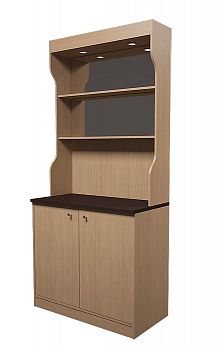Каркас - ЛДСП; столешница рабочая - ЛДСП 25мм(является несущим элементом каркаса и имеет присадку). с кромкой ПВХ 2мм.; внутреннее наполнение - дно и полка из ЛДСП. Задняя стенка утоплена на 8 мм для удобства прокладки проводов. Корпус собирается из ЛДСП 16мм на шкантах и эксцентриках. Двери распашные (опционально) установлены на вкладные петли. Внешние следы крепления отсутствуют.