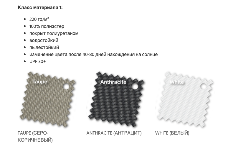Ткань: 100 % полиэстер, покрытый полиуретаном (водостойкий, пылестойкий)