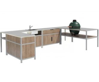 Накрыть стол для дружеских или семейных посиделок в саду гораздо проще, когда не приходится каждый раз бегать на кухню. Для этих целей служит уличная кухня «Альянс Эко». Мебель можно установить на веранде или посреди сада, под навесом или без него. Материалы не боятся влаги, прямых солнечных лучей, прохладных ночей. Стальные поверхности надежно защищены слоем оцинковки, а HPL-фасады — пластиком.